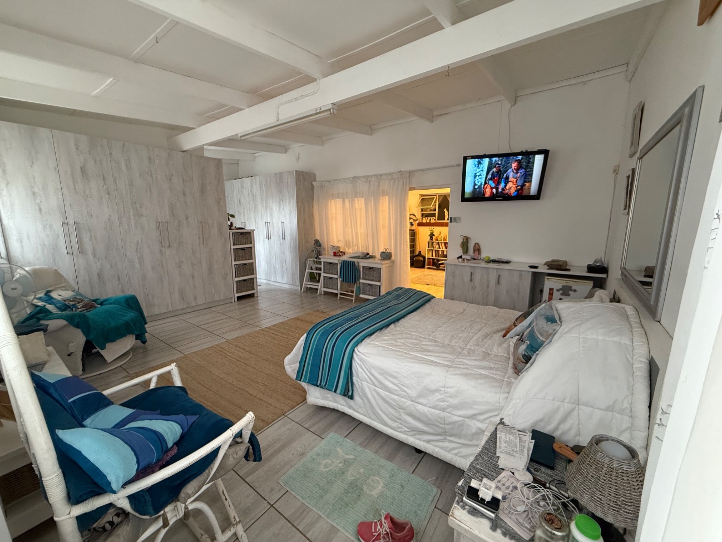 The living areas are spacious and inviting, with two lounges, one featuring an indoor built-in braai — perfect for entertaining. The open-plan kitchen flows seamlessly into the living space and is supported by a separate scullery and a dedicated laundry room.