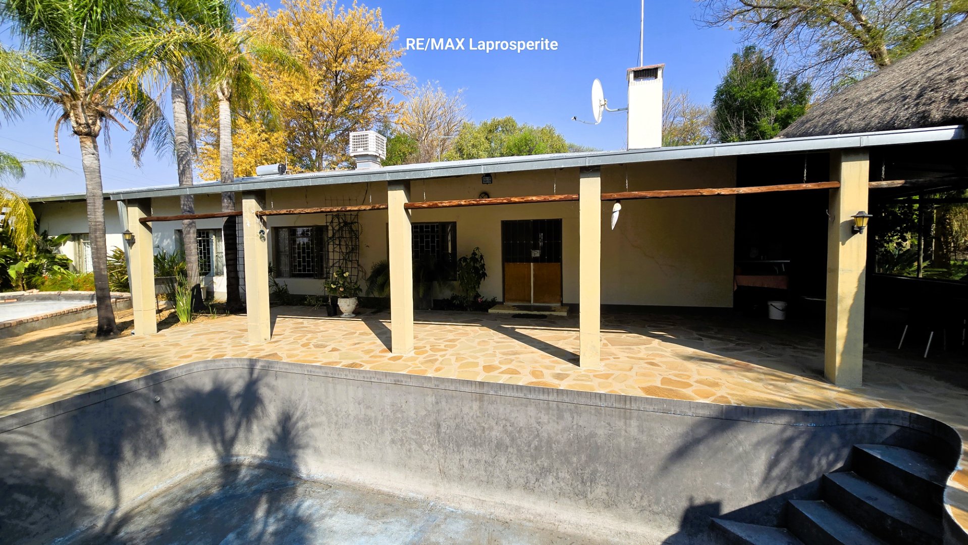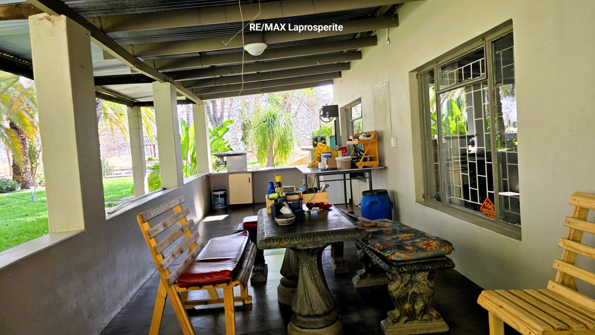 Discover an exceptional lifestyle farm opportunity in the serene Omaruru region of Namibia. This expansive 173.61-hectare property offers a unique blend of natural beauty and comfortable living, perfect for those seeking country living with ample space and privacy. The property boasts a substantial 781 sqm floor size, featuring a well-appointed interior designed for both relaxation and functionality. The residence comprises five spacious bedrooms and three bathrooms, including two en-suite facilities, ensuring comfort for residents and guests. The layout includes a welcoming lounge, a dedicated dining room, and a practical kitchen equipped with a pantry. An additional family TV room and a study provide versatile spaces for work or leisure. Modern conveniences such as air conditioning, special doors, and special lighting enhance the living experience, while an open-plan design fosters a sense of connectivity throughout the main living areas. Outdoor living is a highlight, with a refreshing swimming pool, a lapa, and a patio perfect for entertaining. The property features a built-in braai and a communal braai area, ideal for social gatherings. Lush gardens are maintained by an irrigation system and a borehole, complemented by water tanks for sustainable water management. Extensive paving and a driveway lead through the property, which also includes staff quarters, domestic rooms, and is pet-friendly with dedicated aviary structures visible in the natural landscape. Security is well-addressed with electric fencing, an access gate, security gates, and burglar bars, providing peace of mind. The property benefits from ADSL connectivity and offers breathtaking scenic views of the surrounding natural environment. This Omaruru lifestyle farm presents a rare chance to embrace a tranquil, self-sufficient existence. Key Features: * 5 Bedrooms, 3 Bathrooms (2 En-suite) * Expansive 173.61 ha Erf Size * 781 sqm Floor Size * Swimming Pool, Lapa & Patio * Borehole, Water Tanks & Irrigation System * Electric Fencing & Access Gate * Staff Quarters & Domestic Rooms * Scenic Views & Pet-Friendly * ADSL Connectivity