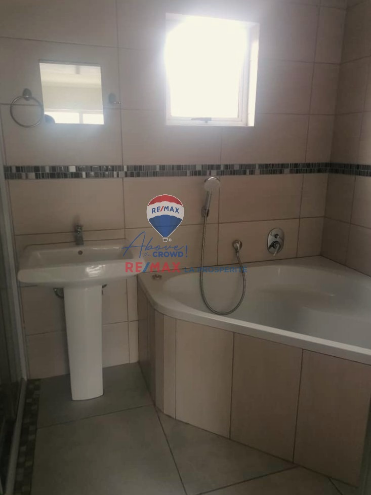 This 3 Bedroom Apartment is FOR SALE, the bedrooms are spacious, have built-in cupboards and the second bedroom has a balcony. All bedrooms and 2 bathrooms are upstairs. The master bedroom has an en-suit bathroom with a corner bath, shower, toilet and basin. The second bathroom has a spacious shower, toilet and basin.