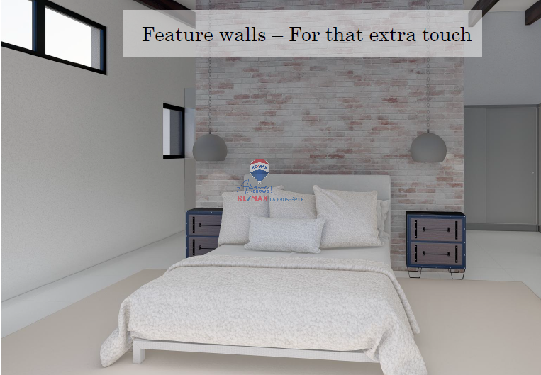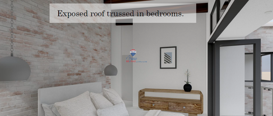 2 Family rooms that share a bathroom with a shower. The bedrooms have exposed roof trusses and a feature walls for that extra touch.