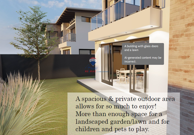 There is a private garden area where kids can play and it is per friendly. Perfect for a ultra modern family home that has been beautifully designed by a well known construction company.