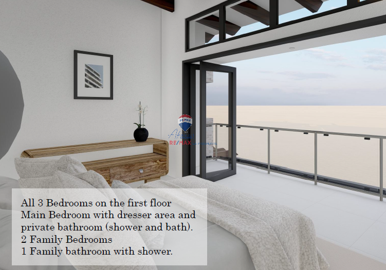 3 Bedrooms on the first floor, master bedroom has a dresser area with a private bathroom that has a shower and a bath.