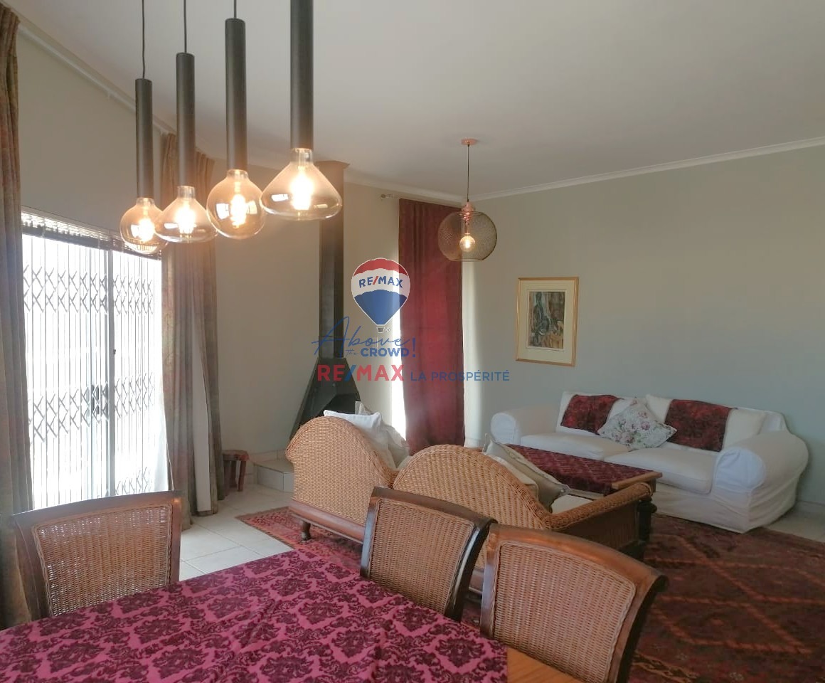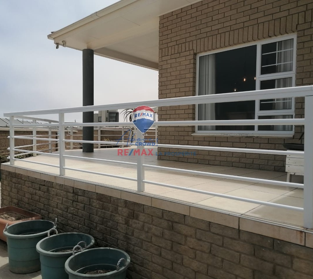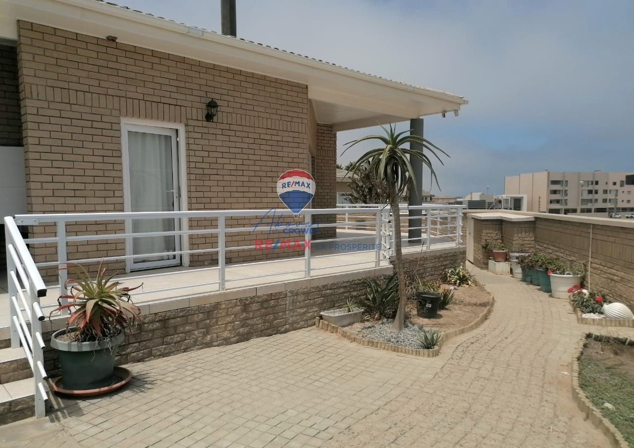 This modern 3-bedroom, 2-bathroom residence is situated in the desirable coastal suburb of Swakopmund, Namibia. Boasting a contemporary brick exterior with white railings and a tiled patio, the property offers excellent kerb appeal. Ideal as a holiday home or permanent residence, it provides a scenic setting within a well-established complex in Vogelstrand, perfect for enjoying the coastal lifestyle. Spanning 222 square meters, the home features an inviting open-plan layout that seamlessly connects the lounge, dining area, and kitchen. Tiled flooring extends throughout these main living spaces, ensuring durability and easy maintenance. The lounge is enhanced by a cozy fireplace, creating a warm focal point, while large windows and sliding doors allow ample natural light to fill the interior. Modern pendant lighting fixtures add a touch of contemporary style. The functional kitchen is equipped with extensive wooden cabinetry, integrated appliances including an oven, hob, and dishwasher, plus a dedicated microwave space. While offering ample storage, the kitchen presents an opportunity for personalization. The property comprises three comfortable bedrooms and two well-appointed bathrooms, providing practical accommodation. Step outside to a tiled patio/balcony, perfect for outdoor entertaining, complete with a built-in braai. The exterior features paved outdoor spaces and a low-maintenance garden. Practical amenities include a double garage and pet-friendly policies. Security is well-addressed with an alarm system, electric fencing, an access gate, burglar bars, and security gates on windows and doors, offering peace of mind. Key Features: * 3 Bedrooms, 2 Bathrooms * 2 Garages * 222 sqm Floor Size * Open-plan Living & Dining * Functional Kitchen with Appliances * Tiled Patio with Built-in Braai * Fireplace * Alarm System & Electric Fencing * Burglar Bars & Security Gates * Scenic View
