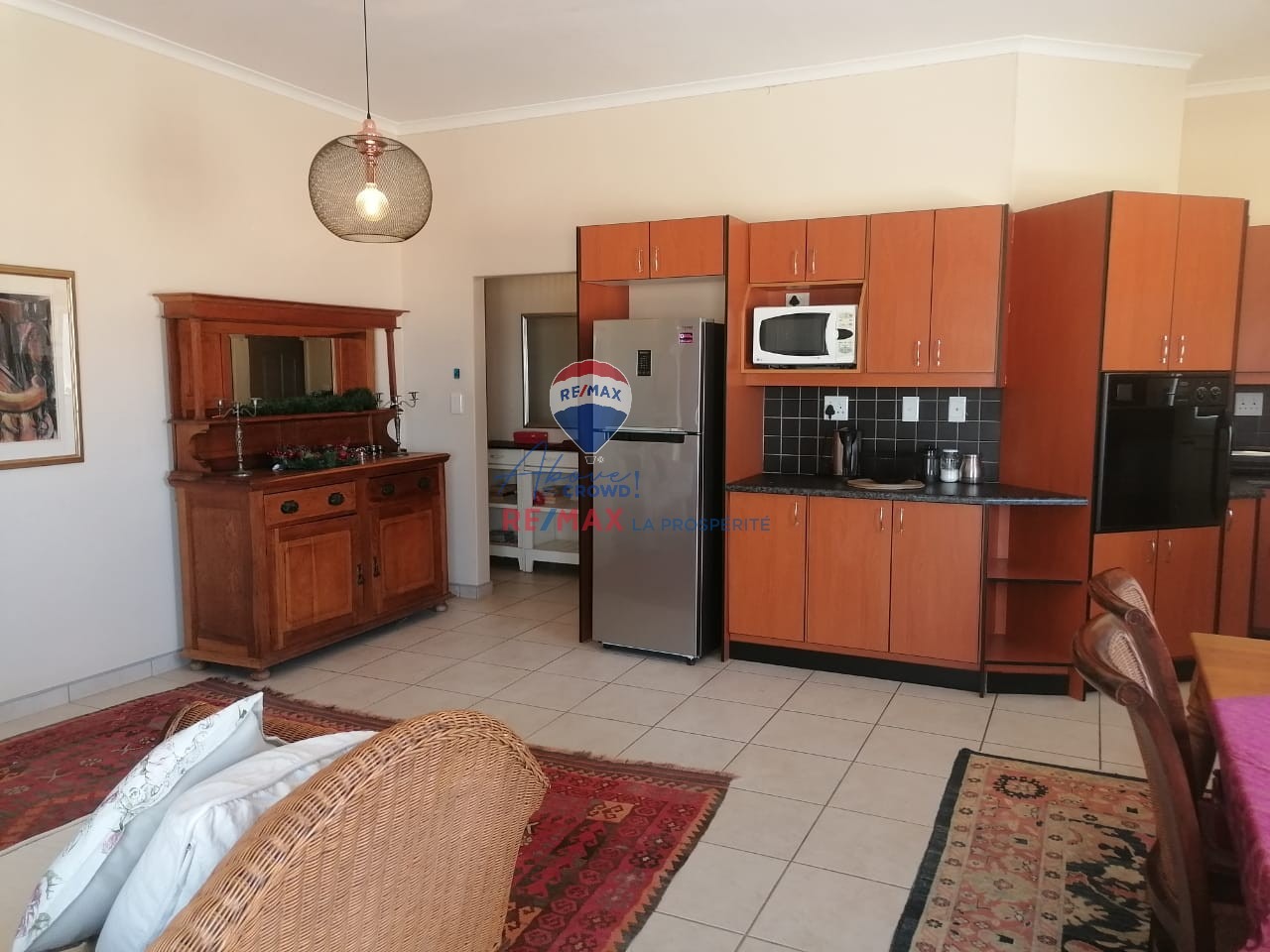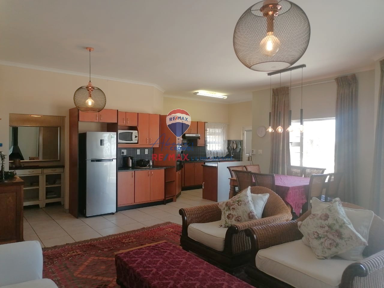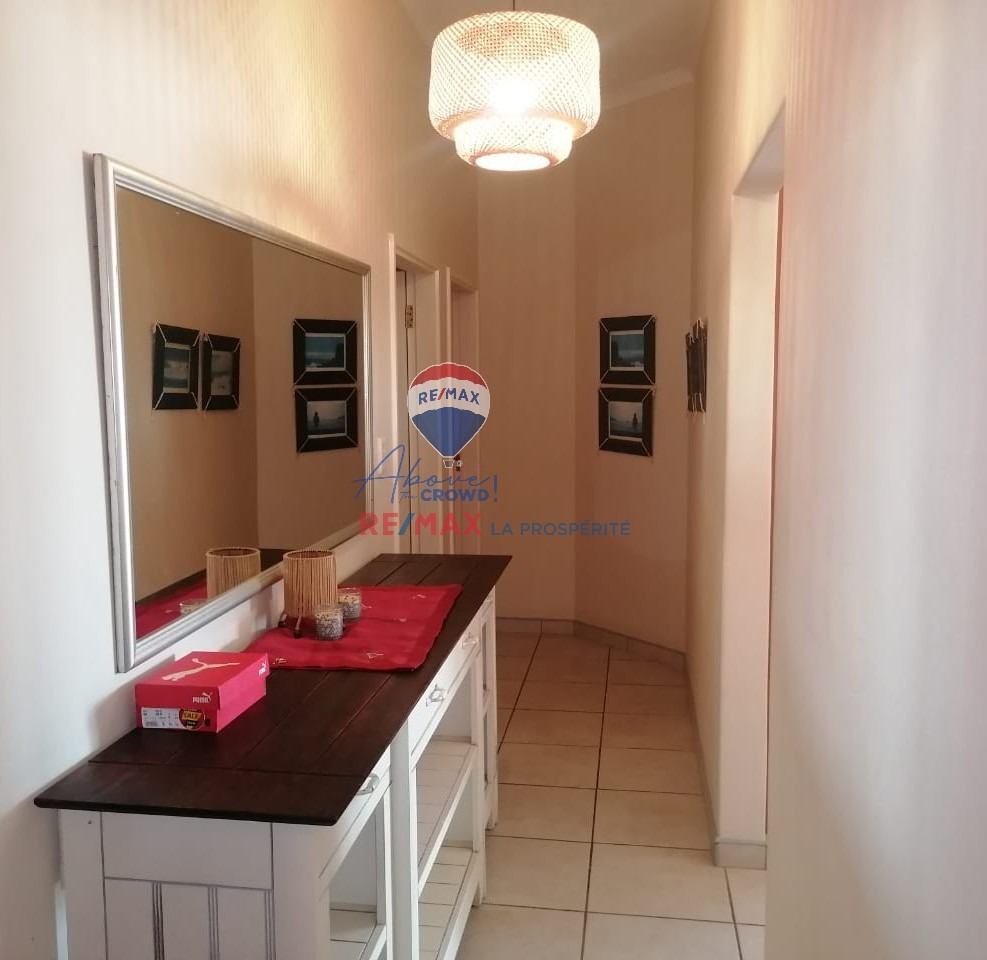 This modern 3-bedroom, 2-bathroom residence is situated in the desirable coastal suburb of Swakopmund, Namibia. Boasting a contemporary brick exterior with white railings and a tiled patio, the property offers excellent kerb appeal. Ideal as a holiday home or permanent residence, it provides a scenic setting within a well-established complex in Vogelstrand, perfect for enjoying the coastal lifestyle. Spanning 222 square meters, the home features an inviting open-plan layout that seamlessly connects the lounge, dining area, and kitchen. Tiled flooring extends throughout these main living spaces, ensuring durability and easy maintenance. The lounge is enhanced by a cozy fireplace, creating a warm focal point, while large windows and sliding doors allow ample natural light to fill the interior. Modern pendant lighting fixtures add a touch of contemporary style. The functional kitchen is equipped with extensive wooden cabinetry, integrated appliances including an oven, hob, and dishwasher, plus a dedicated microwave space. While offering ample storage, the kitchen presents an opportunity for personalization. The property comprises three comfortable bedrooms and two well-appointed bathrooms, providing practical accommodation. Step outside to a tiled patio/balcony, perfect for outdoor entertaining, complete with a built-in braai. The exterior features paved outdoor spaces and a low-maintenance garden. Practical amenities include a double garage and pet-friendly policies. Security is well-addressed with an alarm system, electric fencing, an access gate, burglar bars, and security gates on windows and doors, offering peace of mind. Key Features: * 3 Bedrooms, 2 Bathrooms * 2 Garages * 222 sqm Floor Size * Open-plan Living & Dining * Functional Kitchen with Appliances * Tiled Patio with Built-in Braai * Fireplace * Alarm System & Electric Fencing * Burglar Bars & Security Gates * Scenic View