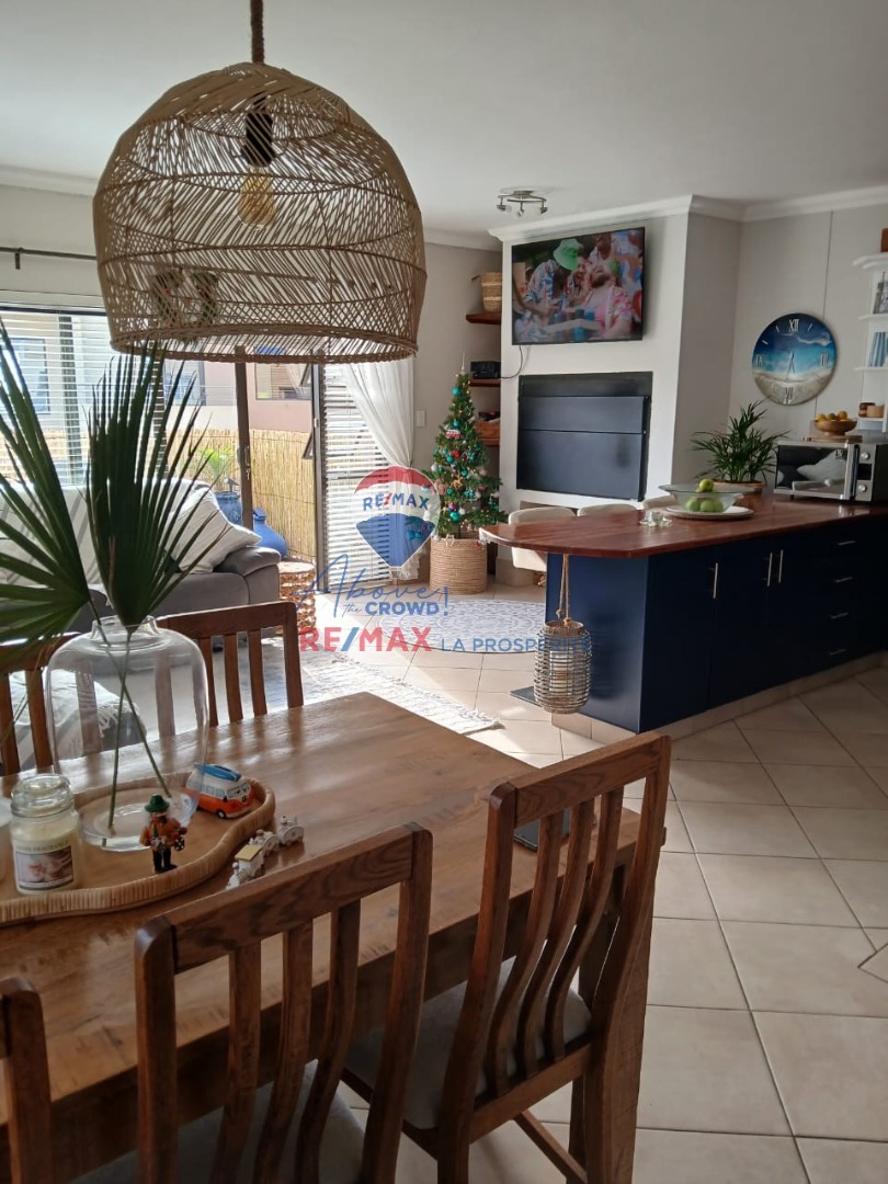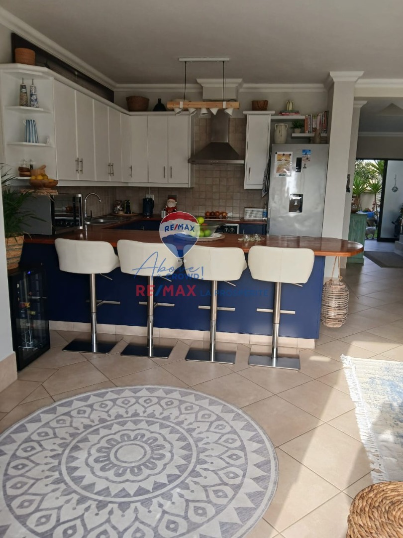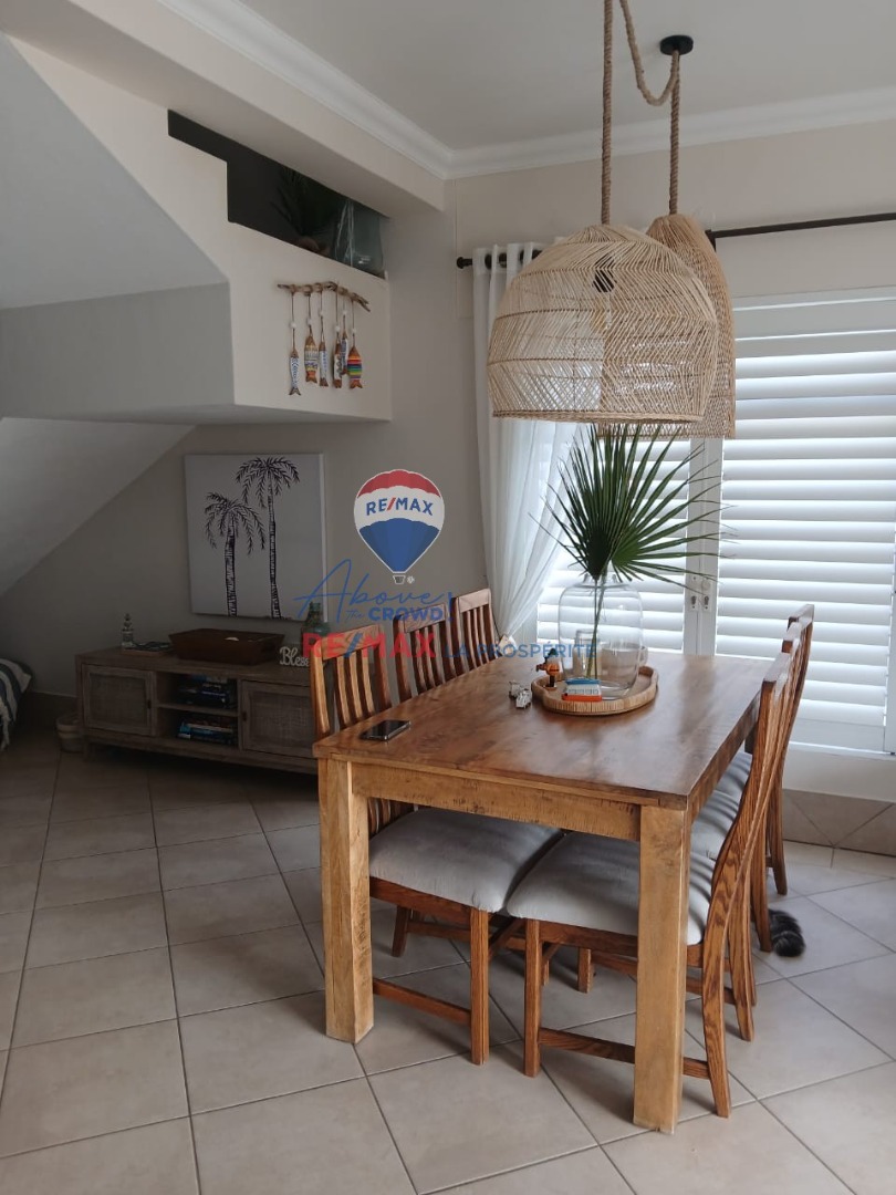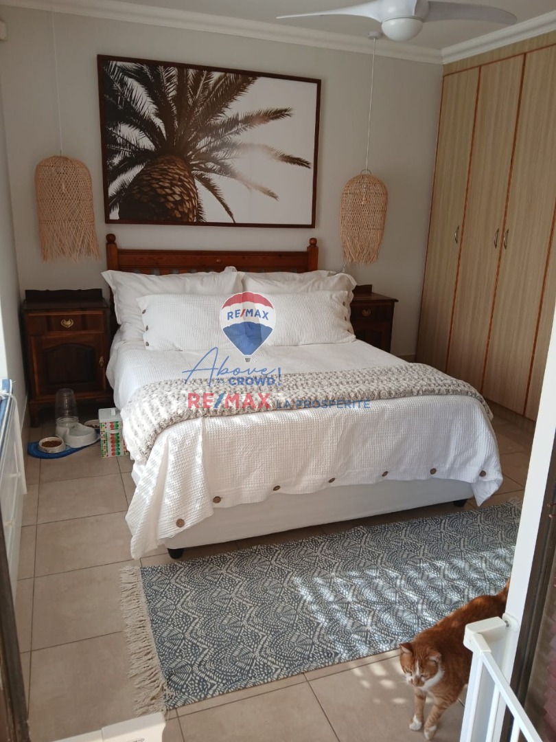 The allure extends outdoors to a magnificent balcony, a true special feature, perfect for savoring unforgettable sunsets. A built-in braai and a meticulously maintained garden provide exceptional opportunities for al fresco dining. The property also includes a single garage, ensuring secure parking, and is pet-friendly. Burglar bars offer an added layer of security for peace of mind.
