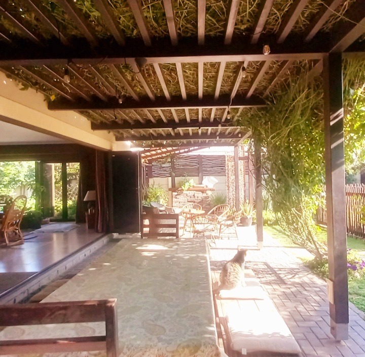 Embrace outdoor living with a magnificent patio, extensively featured in the photos, complete with a vine-covered pergola that offers natural shade and an enchanting ambiance. This versatile space is perfect for al fresco dining, relaxation, and entertaining guests, overlooking a lush, established garden. The property also includes two garages and two additional parking spaces.