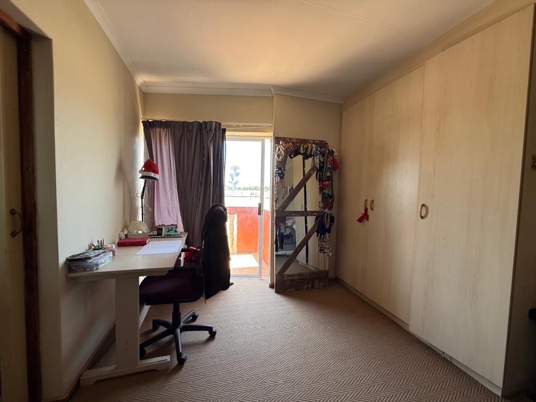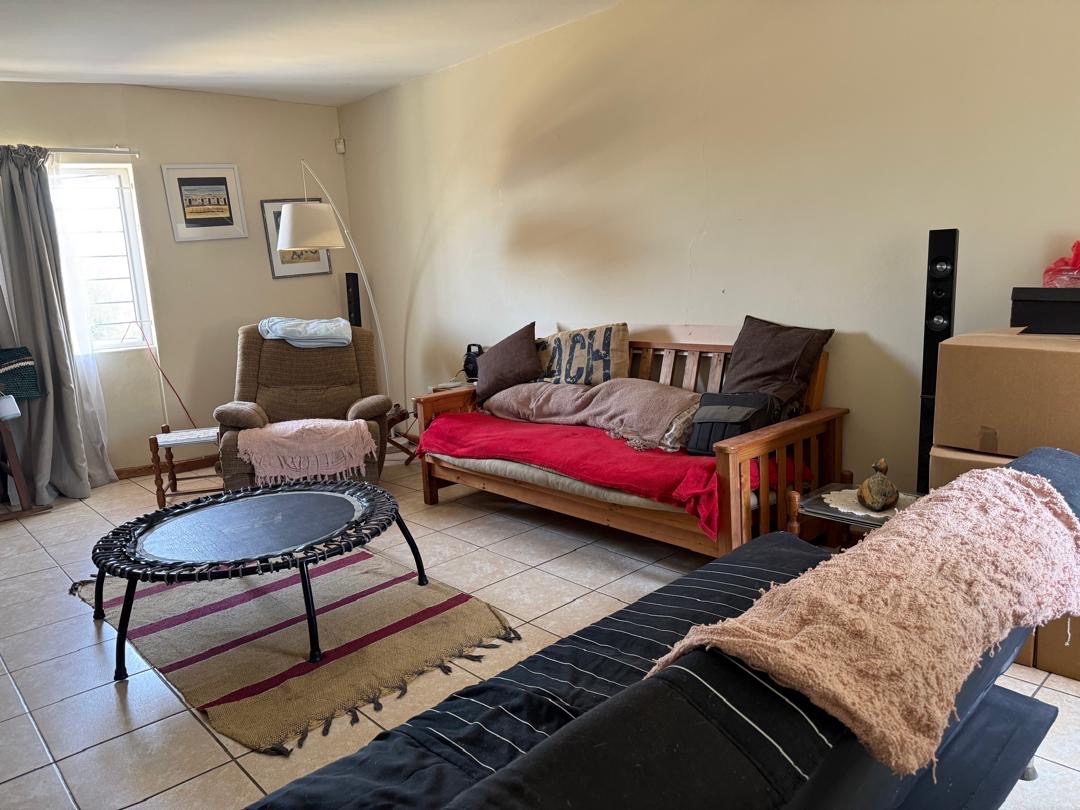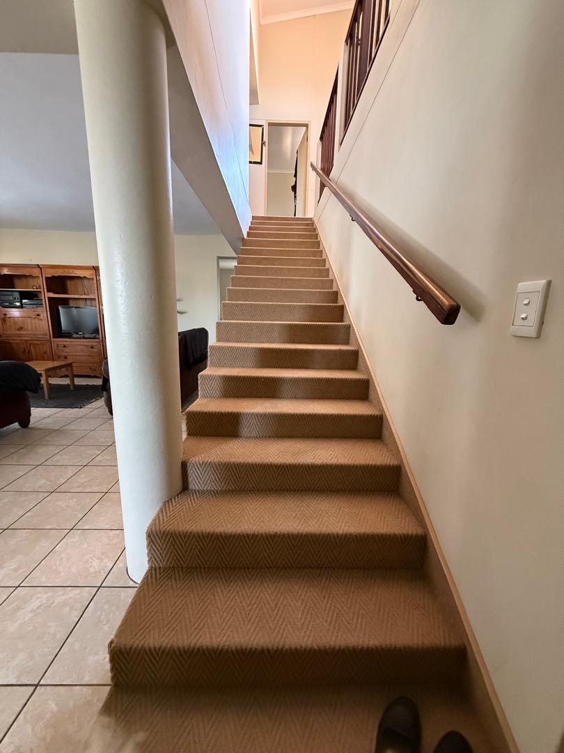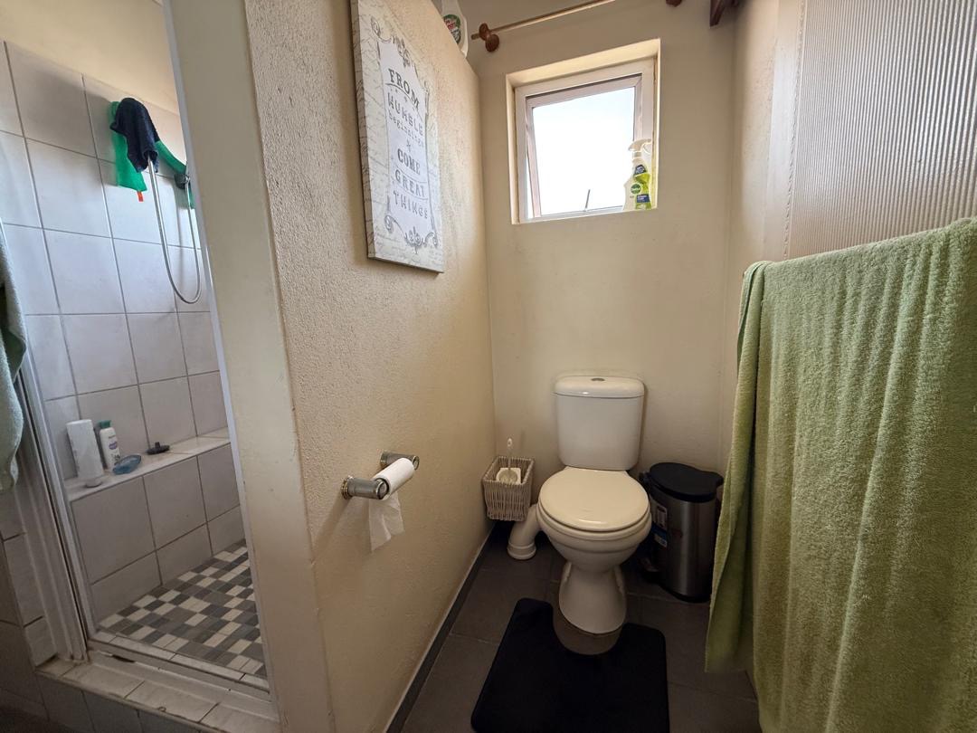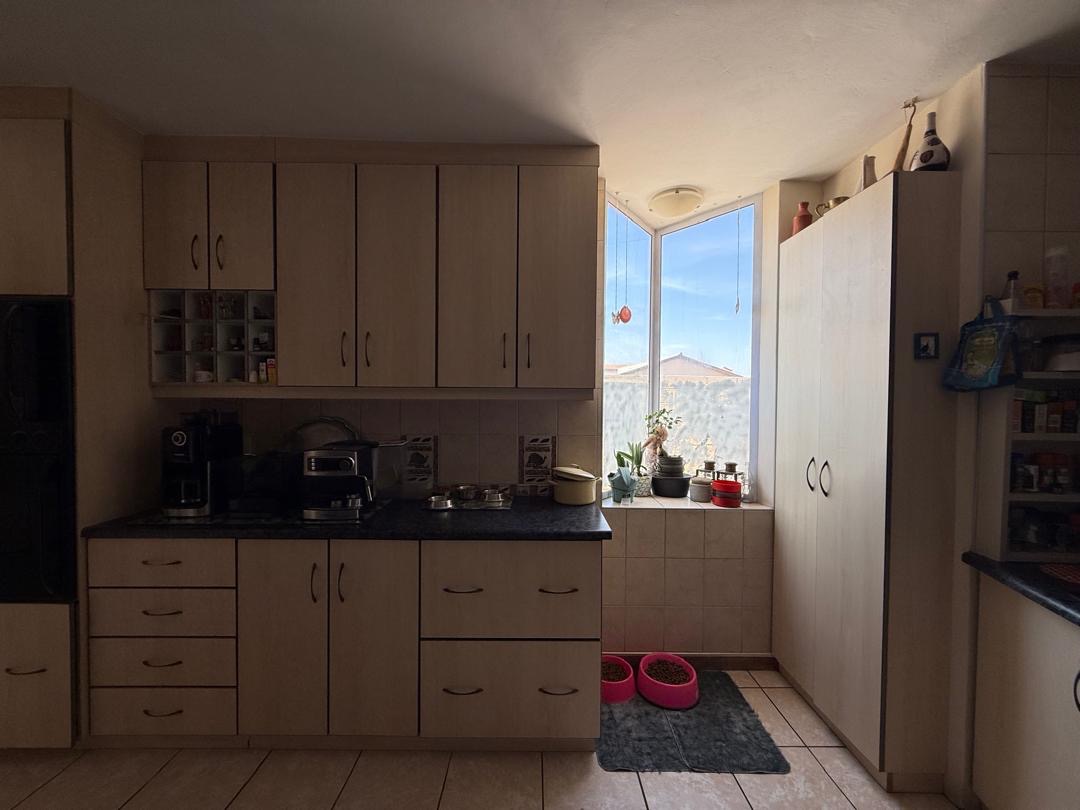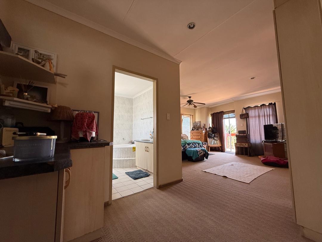 Outdoor living is well-catered for with a private garden and paved sections, ideal for outdoor activities or enjoying the Namibian climate. A notable feature is the balconies, offering an elevated space for relaxation. The property also includes a double garage, providing secure parking and additional storage.