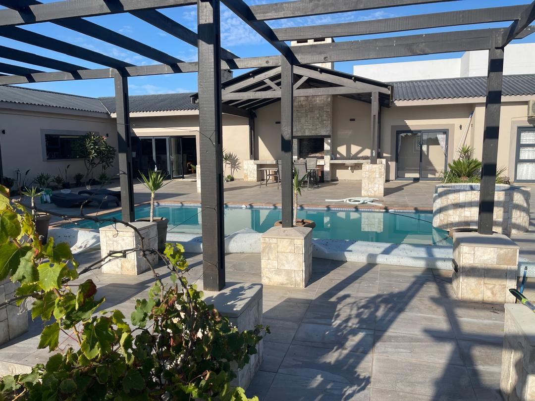Nestled in the desirable suburban enclave of Meersig Park, Walvis Bay, Namibia, this distinguished residence offers an unparalleled lifestyle of sophistication and comfort. Spanning an impressive 393 square meters on a generous 1388 square meter erf, this home is a testament to modern design and luxurious living.