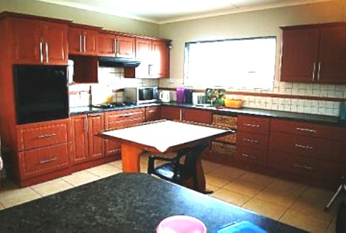 Large fitted kitchen with oven, hob and extractor fan, scullery and laudry areas