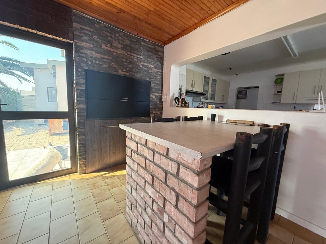 An attractive open-plan kitchen flows seamlessly into the living areas, offering easy functionality for everyday cooking and entertaining. Adjacent to the kitchen is a spacious braai/TV room, ideal for family gatherings, game nights, or simply unwinding after a long day.