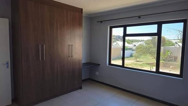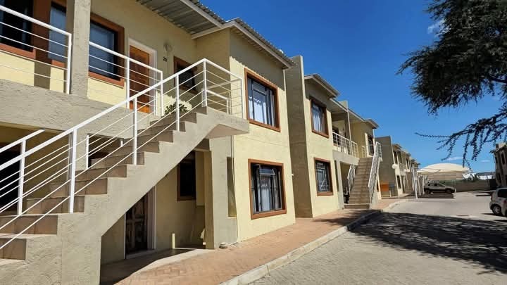 This inviting 2-bedroom, 2-bathroom residence offers comfortable living within a secure complex in Windhoek. The interior features a well-appointed kitchen, seamlessly flowing into a spacious lounge area, perfect for relaxation and entertaining. Sliding doors enhance the living space, providing access to a private balcony, ideal for enjoying the Namibian climate. The layout is designed for practical living, ensuring a harmonious flow throughout the home. The property includes two comfortable bedrooms, complemented by two modern bathrooms, providing convenience and privacy for residents. While specific details on built-in cupboards are not provided, the design ensures functional living spaces suitable for a contemporary lifestyle. Externally, the unit benefits from two dedicated parking spaces, offering secure accommodation for vehicles. The presence of paving contributes to a neat and low-maintenance exterior. As part of a well-maintained complex, residents can enjoy a hassle-free living environment without the upkeep of a private garden or pool. Situated within a security estate, this home provides peace of mind with enhanced safety features, including a security gate. This secure environment is ideal for those seeking a lock-up-and-go lifestyle or a safe family residence. Elisenheim, located in Windhoek, Namibia, is a desirable suburb known for its tranquil atmosphere and community-oriented living. It offers a blend of convenience and natural beauty, making it a sought-after residential area. Key Features: * 2 Bedrooms * 2 Bathrooms * 1 Kitchen * 1 Lounge / Family TV Room * 2 Parking Spaces * Balcony * Paving * Security Gate
