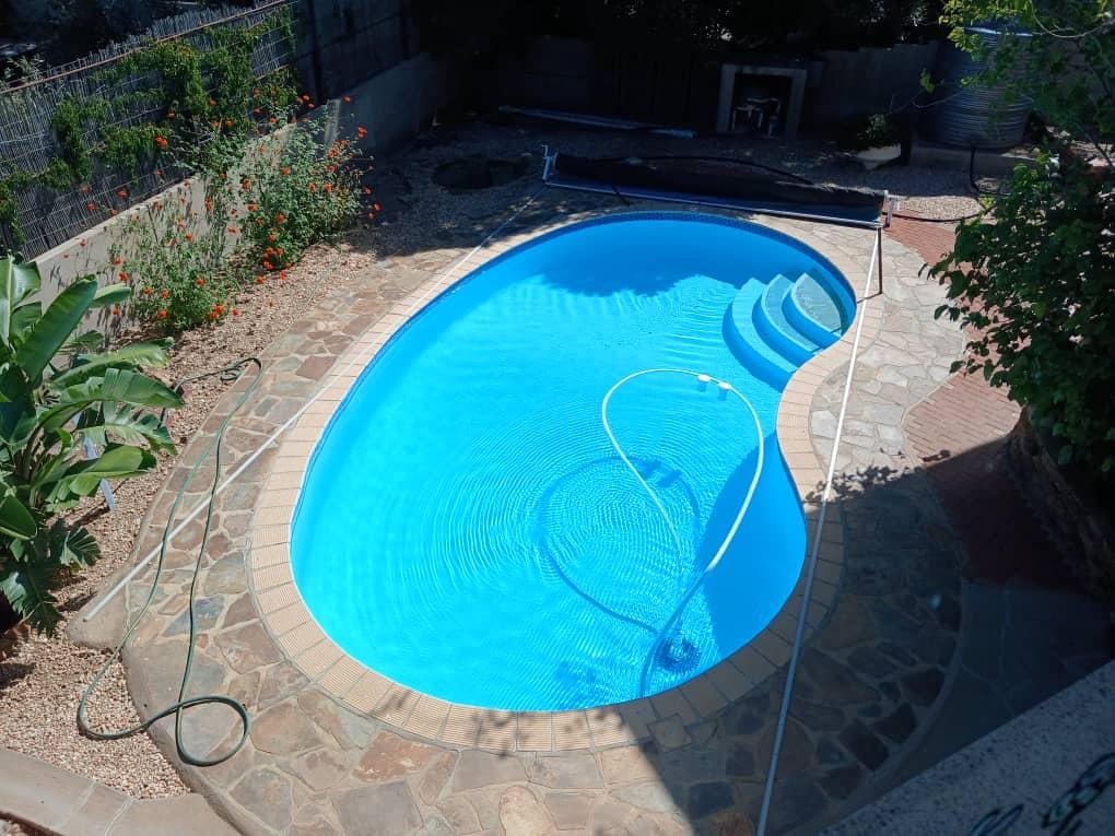 Externally, the property features a private swimming pool and an expansive deck, perfect for outdoor leisure and social gatherings. a balcony offer serene spaces to appreciate the scenic views. Practical considerations are well addressed with two secure garages and ample additional parking, staff quarters, domestic rooms, a dedicated laundry area, and substantial storage facilities. Enhanced security measures include an alarm system, electric fencing, an access gate, and 24-hour security surveillance, ensuring peace of mind. The inclusion of solar panels underscores a commitment to energy efficiency and sustainable living.