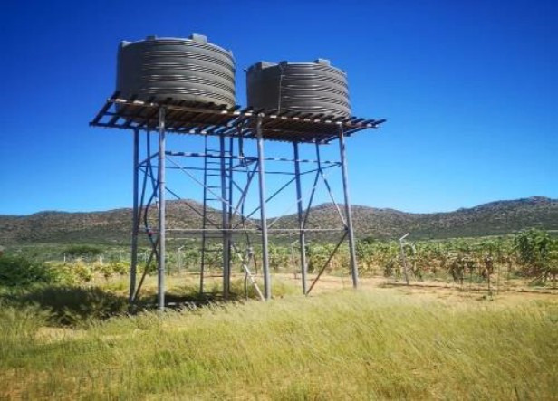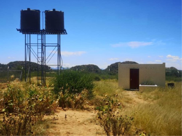 There is one borehole powered by a solar pump. Water storage facilities include 2 x 5000I PVC tanks.