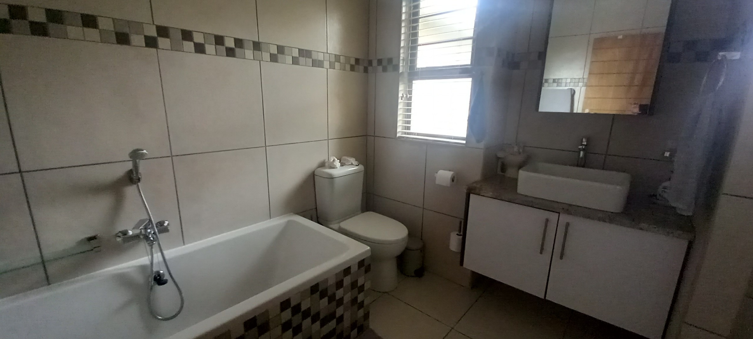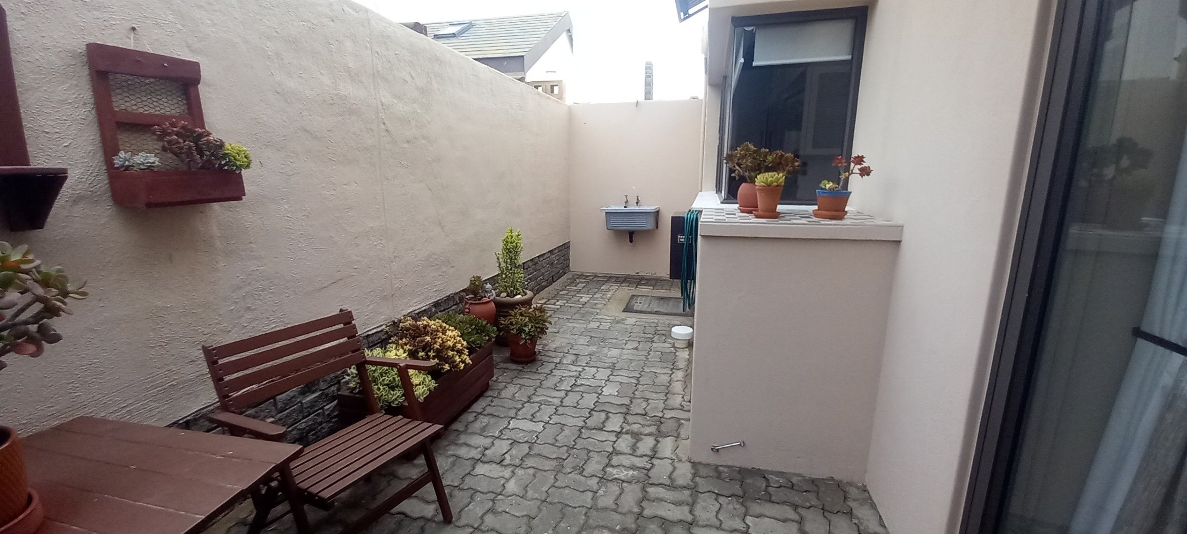 The property extends its appeal outdoors with a private sunny patio, ideal for enjoying the Namibian climate. The garden and paved areas enhances the outdoor space, offering a pleasant environment without extensive maintenance. Secure parking is provided by tandem garages, complemented by an access gate for controlled entry.